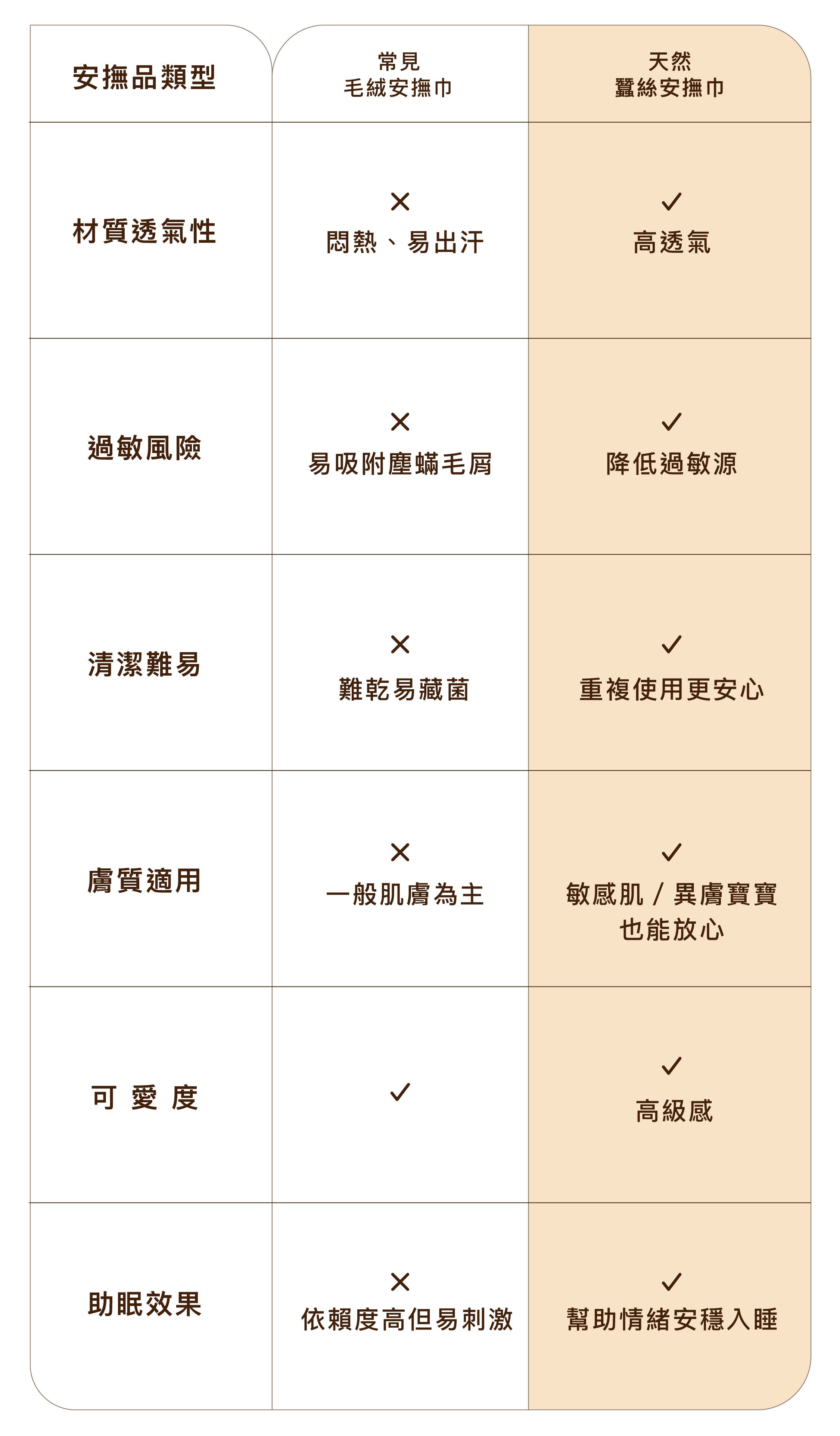 天然蛋白纖維具抑菌特性,守護肌膚健康。適度依賴助眠,也能逐步培養自我安撫力